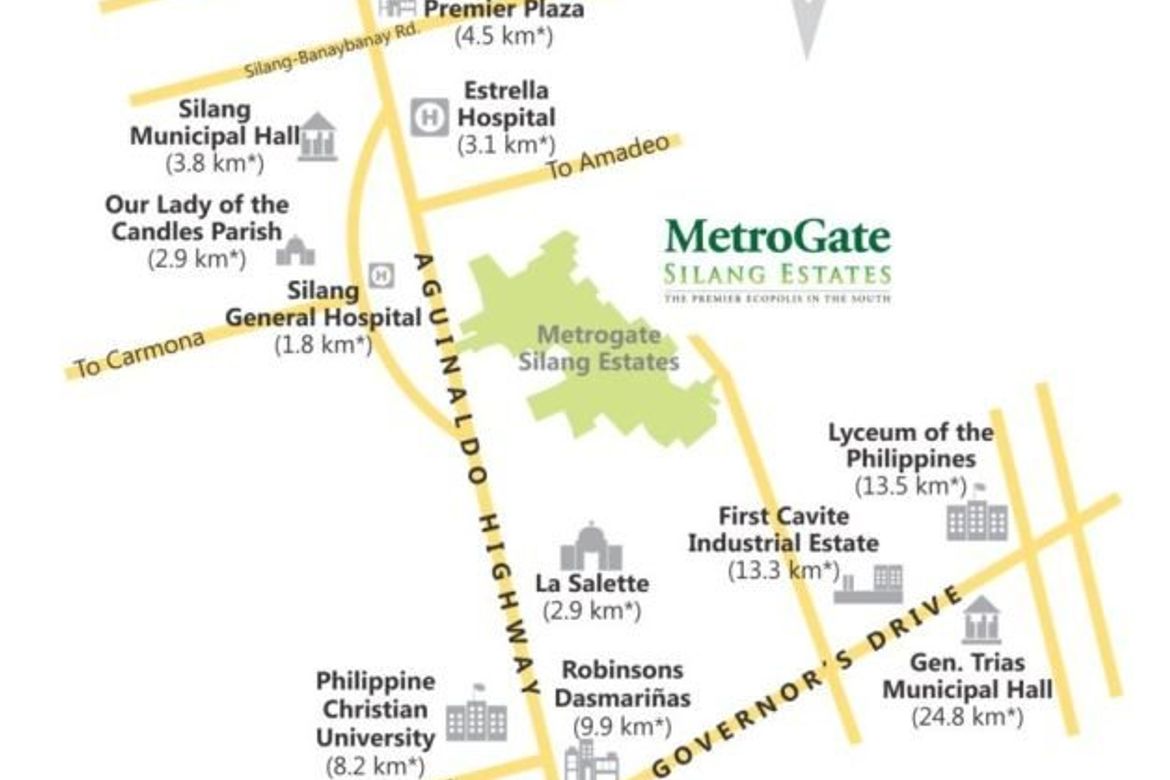 Metrogate Silang Estate是一個230公頃的生態社區,它是一個自給自足的環保社區,享有像塔蓋泰一樣的清涼氣候。它戰略性地位於阿吉納多高速公路旁,毗鄰第一大城市錫蘭省的錫蘭鎮,擁有郁郁蔥蔥的綠色植被和起伏的地形。這個精心規劃的社區也是遠東大學卡維特分校的所在地。